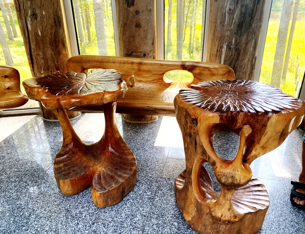 Kahvion uniikit puukalusteet |