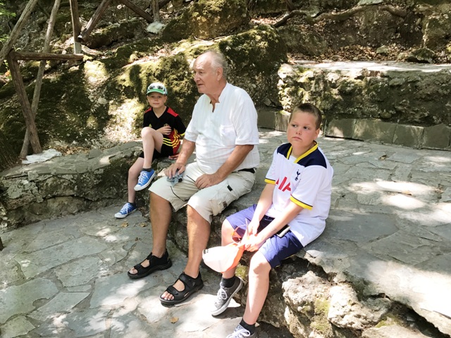 Perhospuistossa - pojat ja pappa