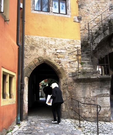 Tästä portista ulos parkkipaikalle