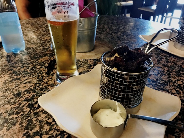 Vesiveski-ravintolassa valkosipulileipää