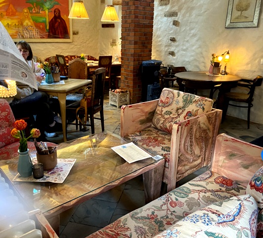 oli maanantaina kiinni. Onneksi löydettiin viehättävä pieni Kohvik, joka tarjoili myös ruokaa.