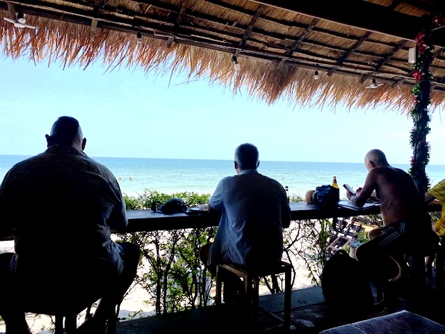 ravintolassa. Pirjon ja Riston kanssa herkuteltiin thai-ruoalla "viimeisellä lounaalla" Takiabin rannassa. Siellä hyvästeltiin myös ympäristössä tutuiksi