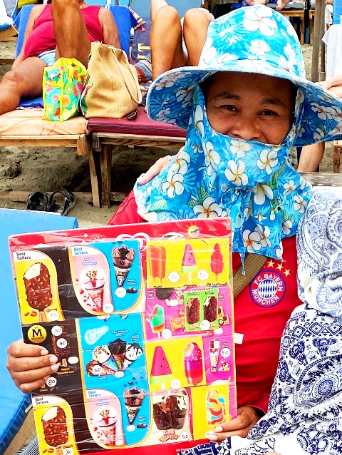 Kyllä tällä lomalla on syöty ennätysmäärä jätskiä, kun iltapäivisin on reviirillemme tupsahtanut tutuksi tullut jätskikauppias, joka on jäänyt siihen