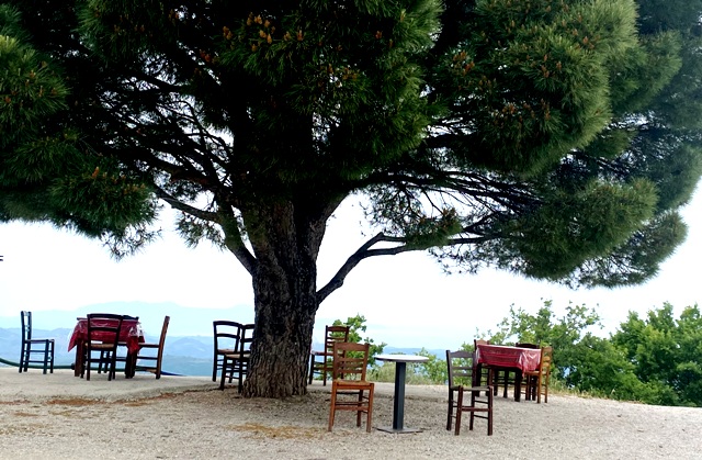 Ravintola puun varjossa vuoristossa |