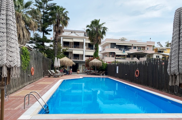 Kotona jälleen - parkkipaikalta allasalueen kautta hotelliin