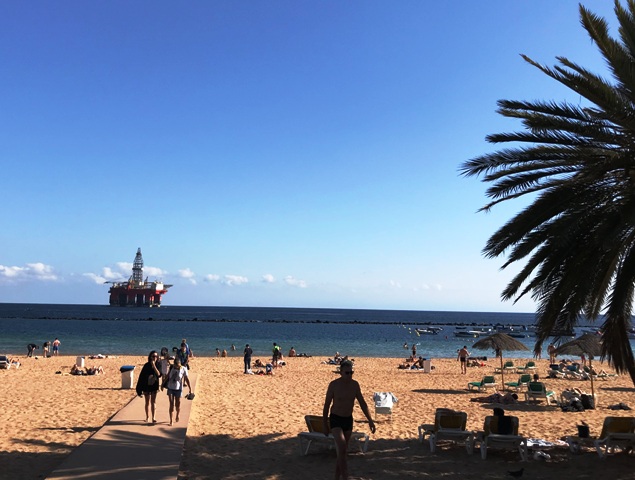 Öljynporauslautta lähellä hiekkarantaa